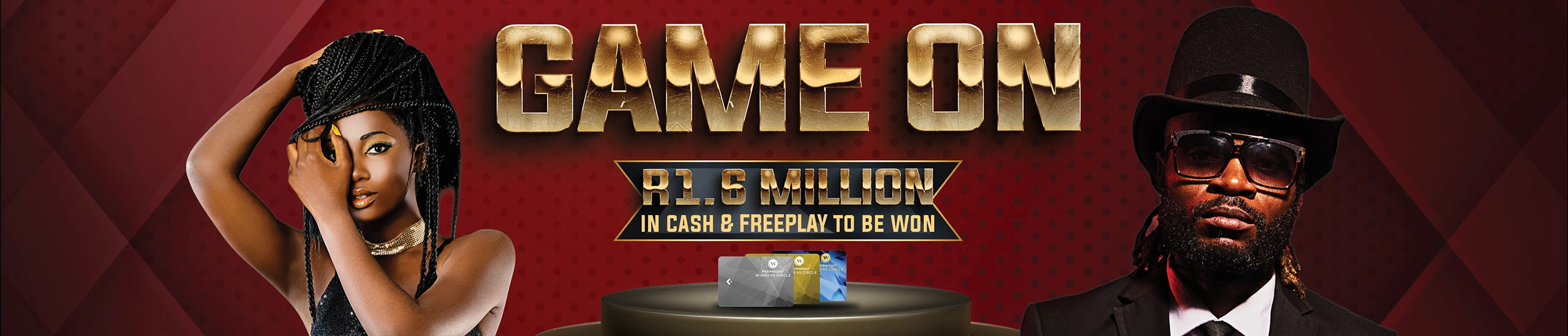 Get ready to play! Get your year off to a winning start with non-stop casino action, prizes and live gameshows with our Game On promotion, and stand a chance to win your share of R1.6 Million in Cash and Prizes!